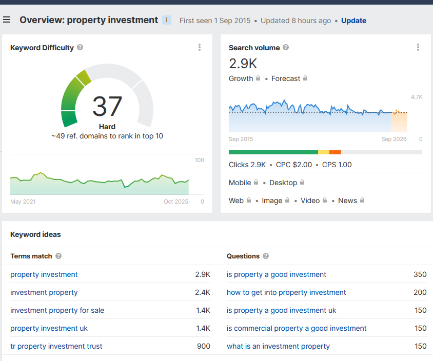 - Investment-related search volumes (e.g., “best UK property investment opportunities 2025”).
